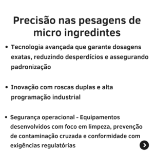 A microdosagem é um processo crítico — pequenas variações podem impactar diretamente a qualidade final do produto. Por isso, contar com uma empresa especializada faz toda a diferença.