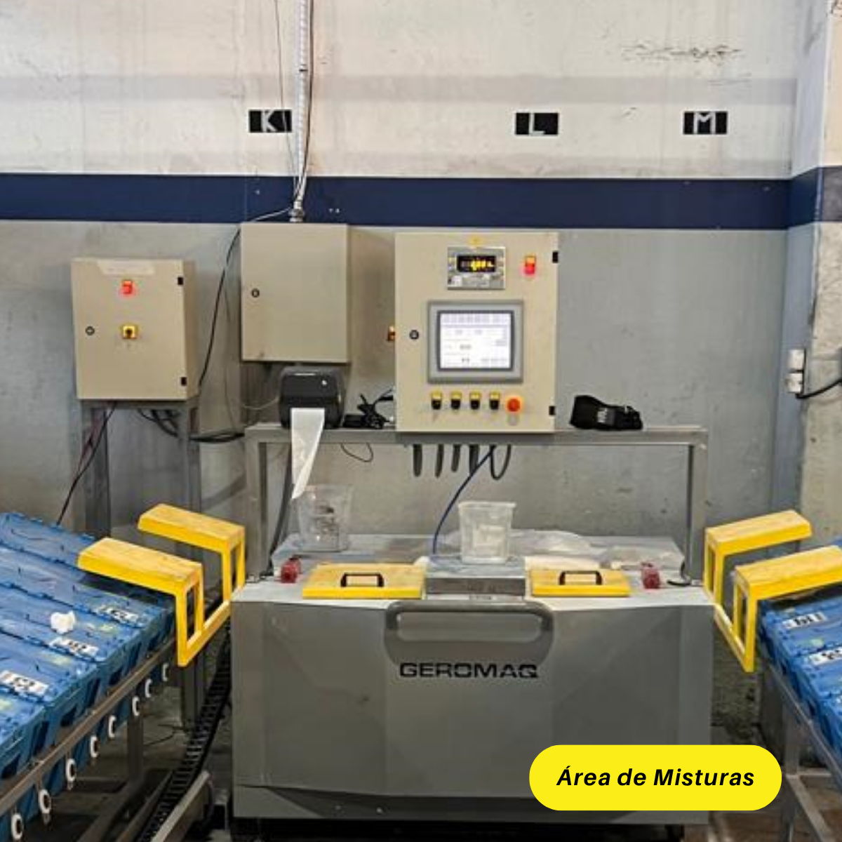 A estação de micro ingredientes para 40 caixas (Pré mix) executam as PESAGENS FRACIONADAS de acordo com a Ordem de Produção. Sua função é realizar as pesagens das matérias primas fracionadas com integração simultânea com balança de 20kg, gerenciadas por sistema FIFO, garantindo rastreabilidade por lote e precisão na pesagem.